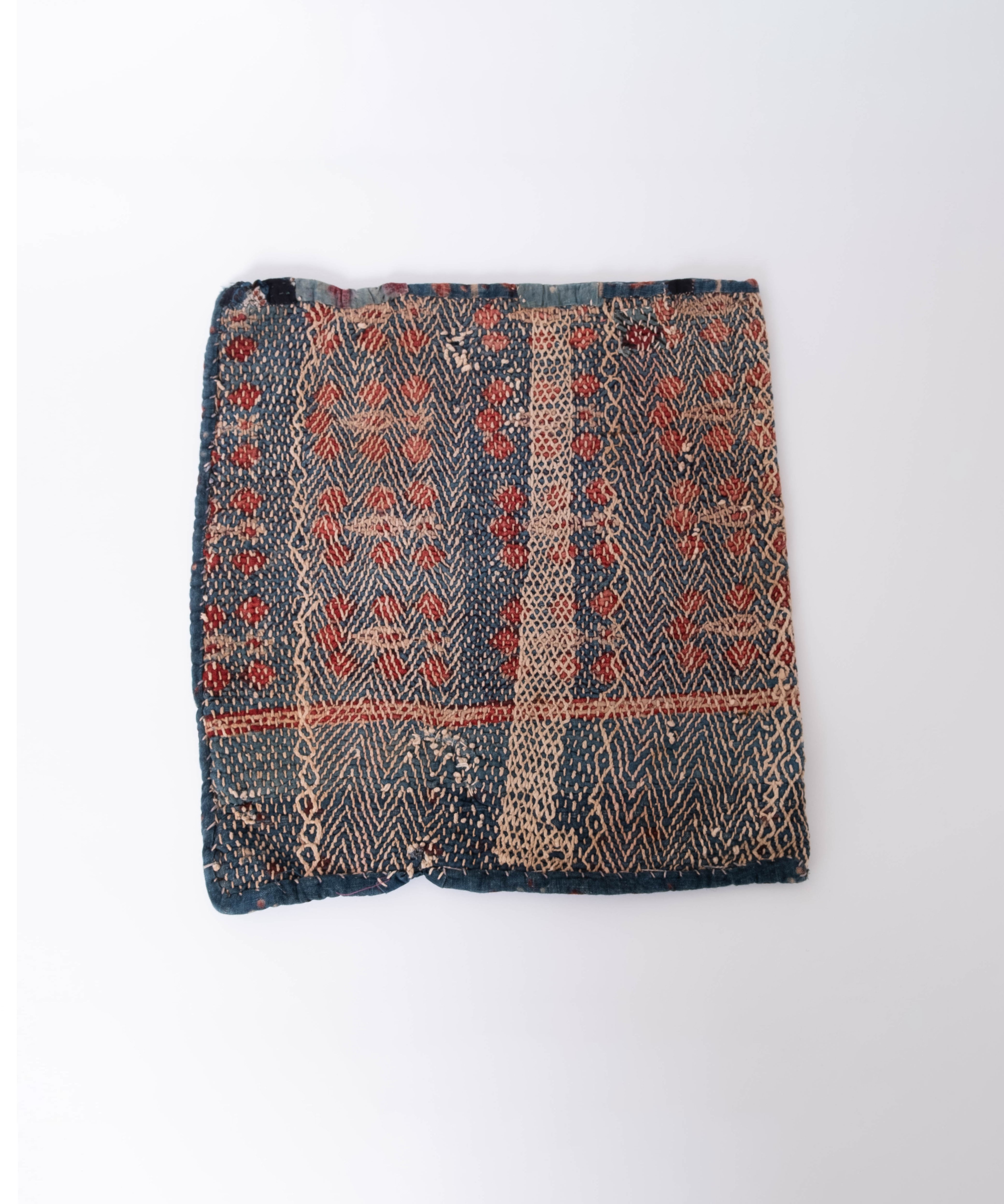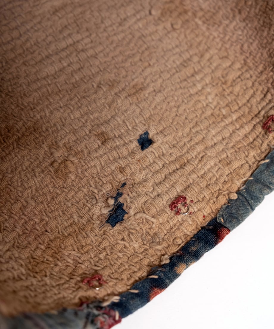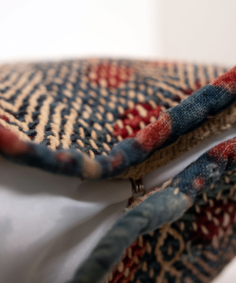 バングラディッシュのバンジャラ族の布袋をクッションカバーに仕立てました。カンタのような素朴な刺し子刺繍が施されています。