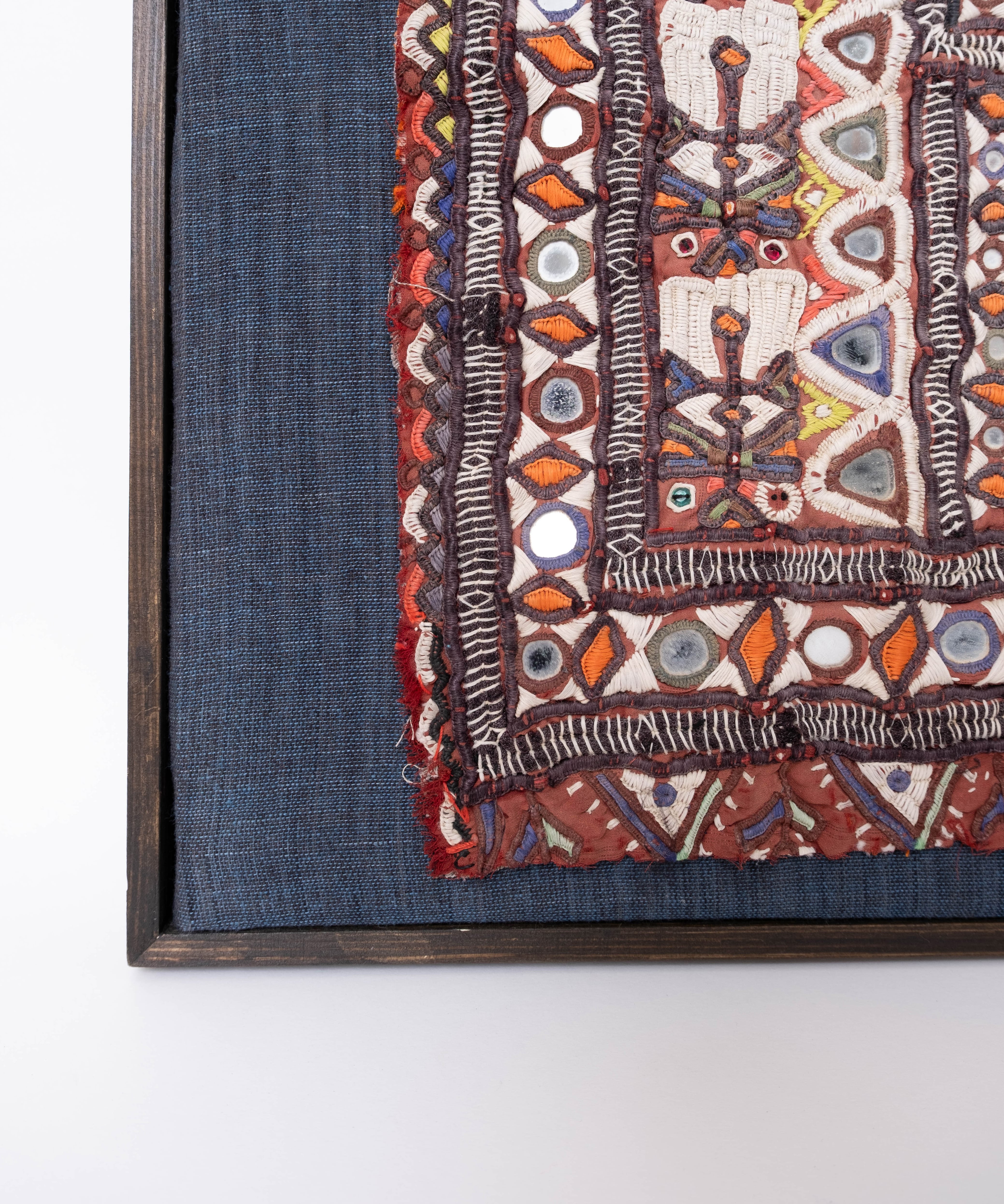 刺繍が繊細で密に施されており、ミラーワークの形状は円形だけでなく三角や四角など様々な形状で作られています。