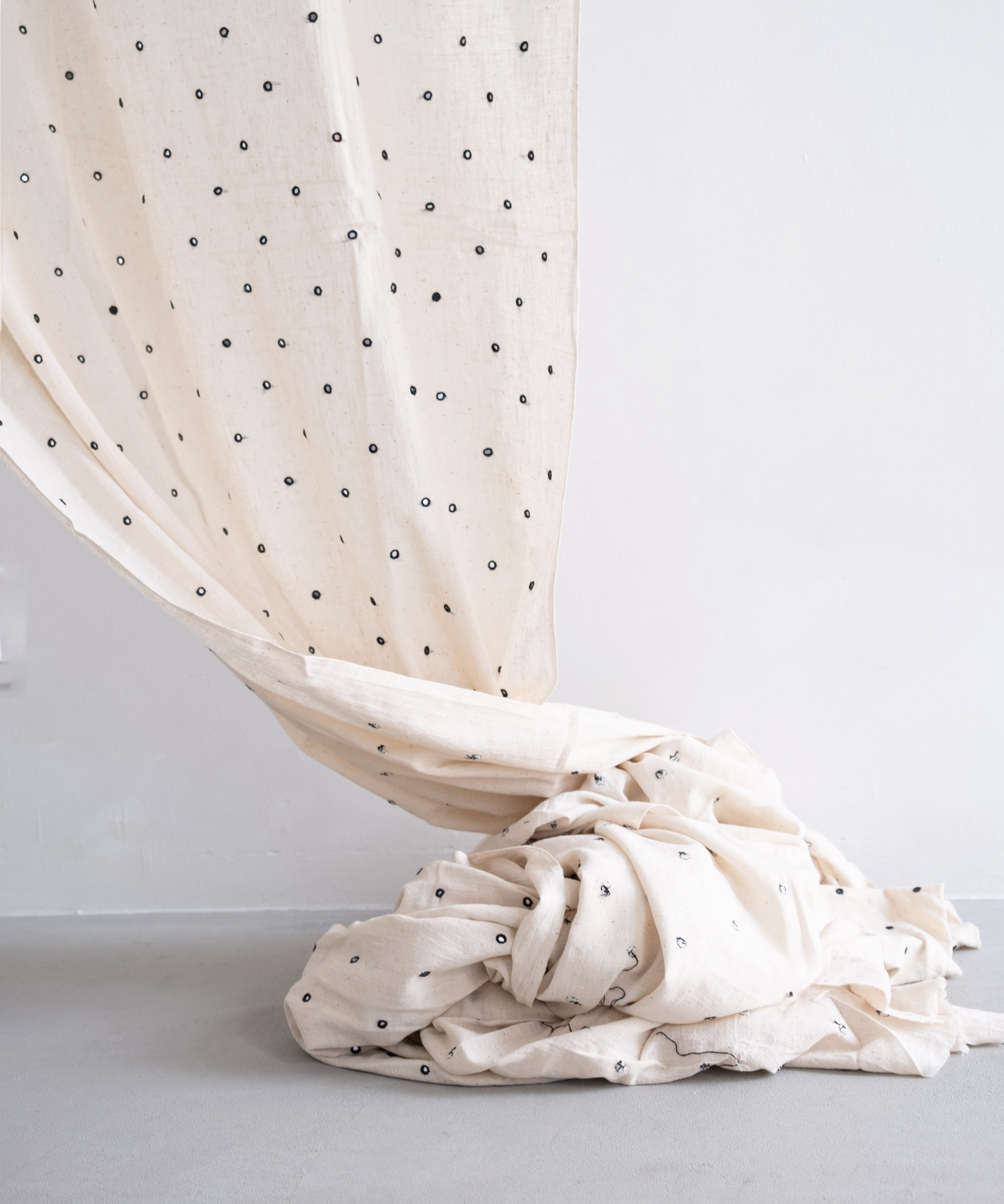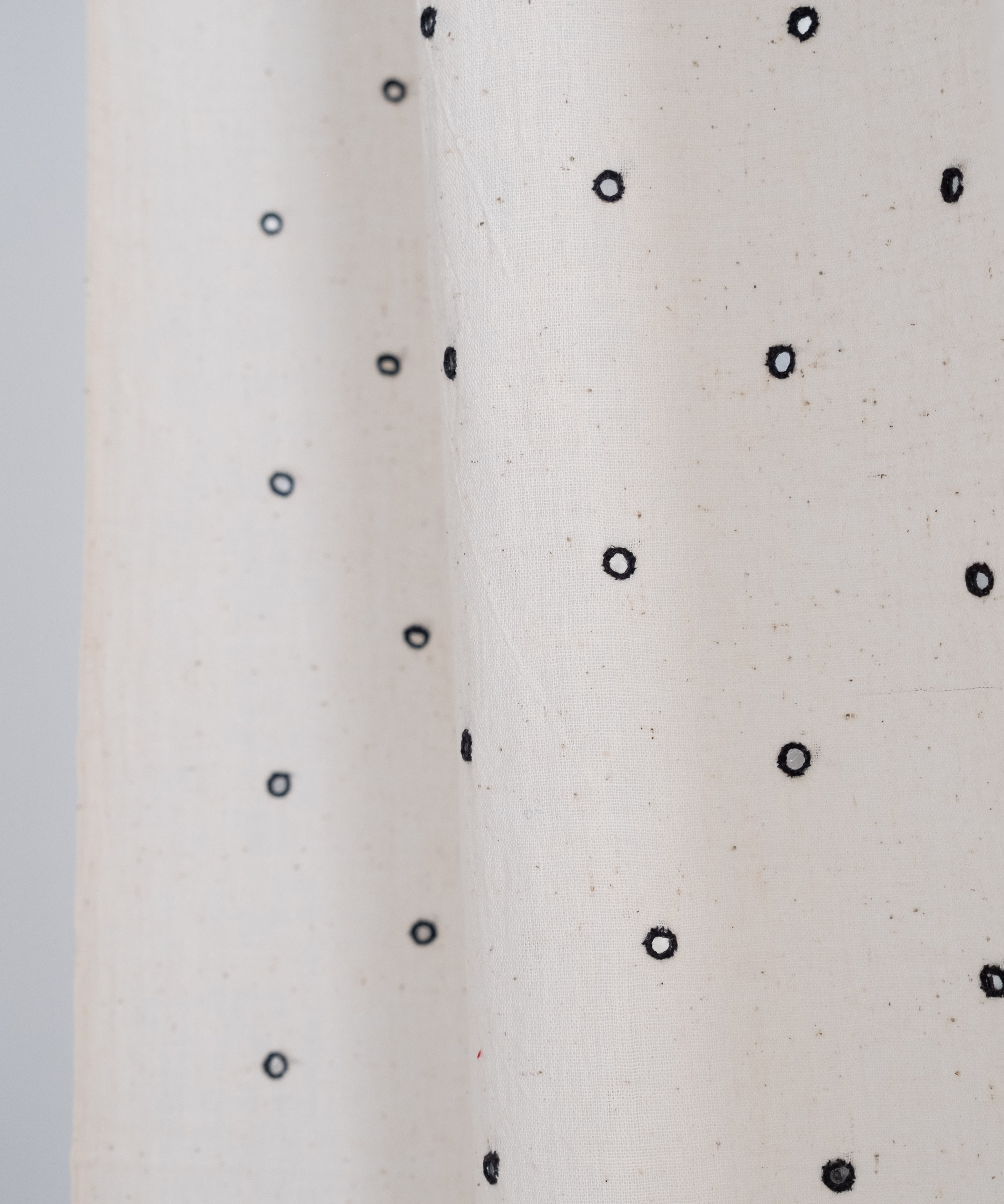 単位は50cmです。1mご入用の方は、数量「2」でご購入ください。 カッチ地方で育てられている、品種改良されていない原種の綿花「kala cotton(カラコットン)」を使用し手織りされた生地に、ラバリ族の女性たちによるミラーワークの手刺繍が施されています。 カラコットンは雨水のみでゆっくりと育ち、農薬も使用しないため、農夫の健康を損なうこともありません。 現代の職人たちのコラボレーションによって生まれた布です。 取り扱い上のご注意 手仕事の品のため、手洗いしてください。
