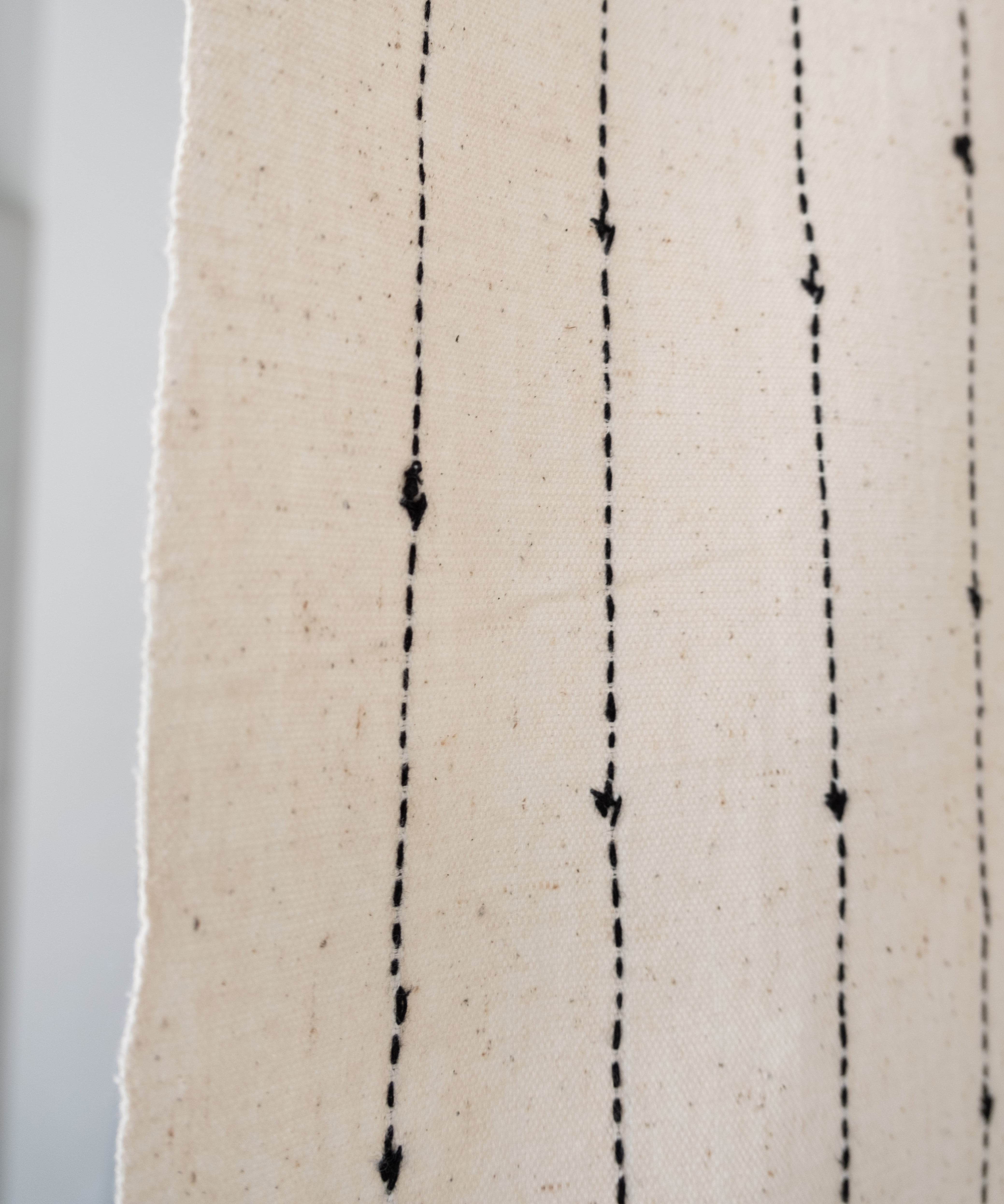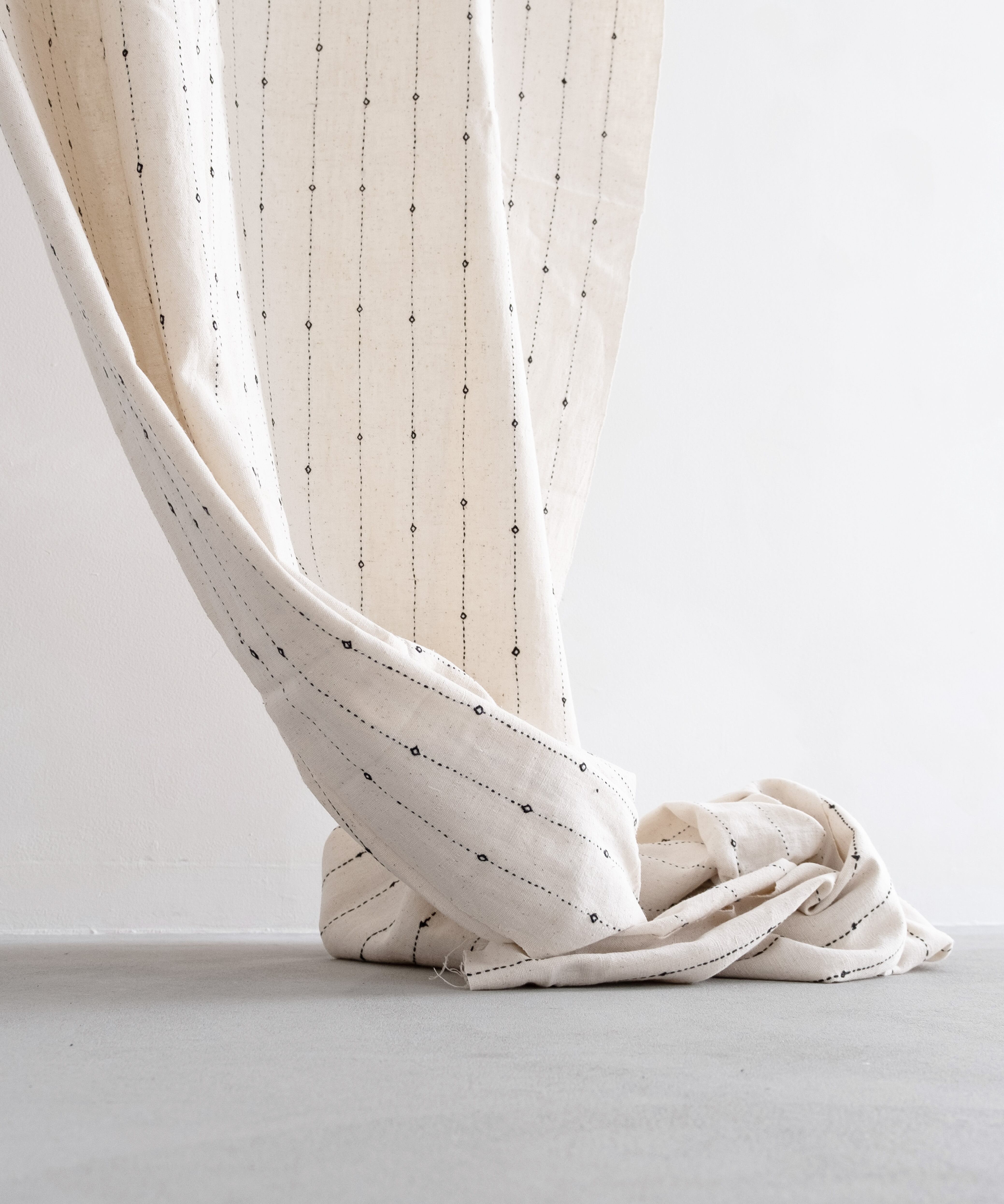 単位は50cmです。1mご入用の方は、数量「2」でご購入ください。 カッチ地方で育てられている、品種改良されていない原種の綿花「kala cotton(カラコットン)」を使用し手織りされた生地に、ラバリ族の女性たちによる手刺繍が施されています。 カラコットンは雨水のみでゆっくりと育ち、農薬も使用しないため、農夫の健康を損なうこともありません。 現代の職人たちのコラボレーションによって生まれた布です。 取り扱い上のご注意 手仕事の品のため、手洗いしてください。