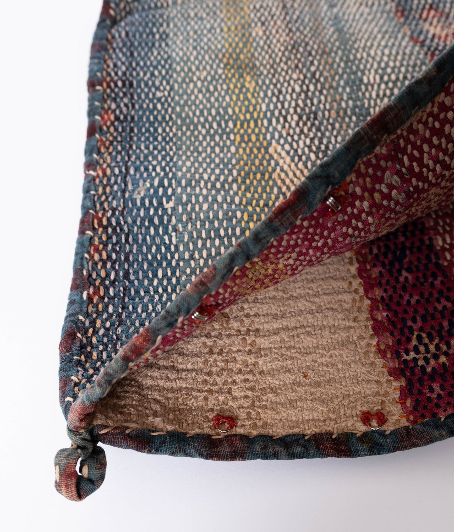 バングラディッシュのバンジャラ族の布袋をクッションカバーに仕立てました。カンタのような素朴な刺し子刺繍が施されています。