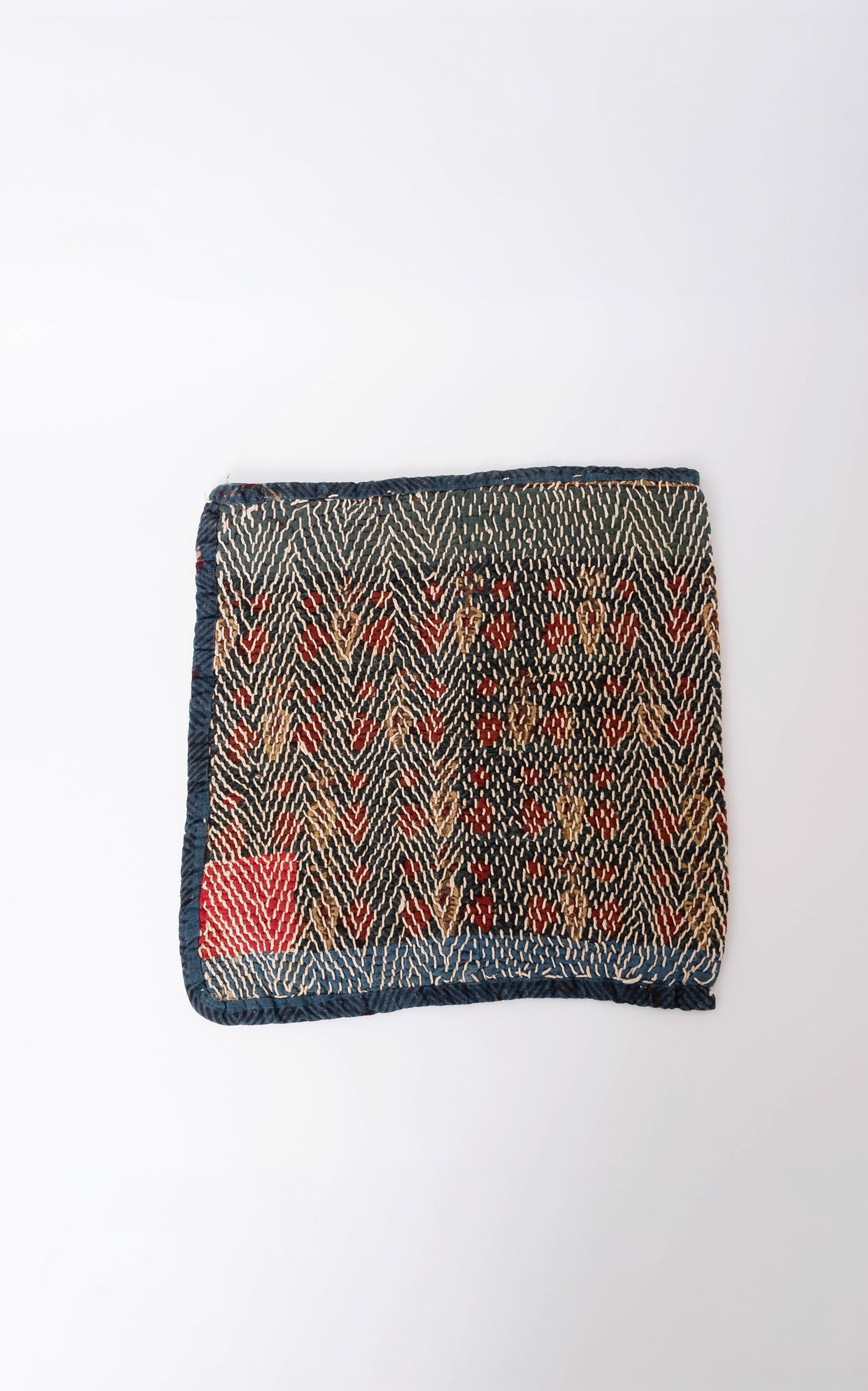 バングラディッシュのバンジャラ族の布袋をクッションカバーに仕立てました。カンタのような素朴な刺し子刺繍が施されています。