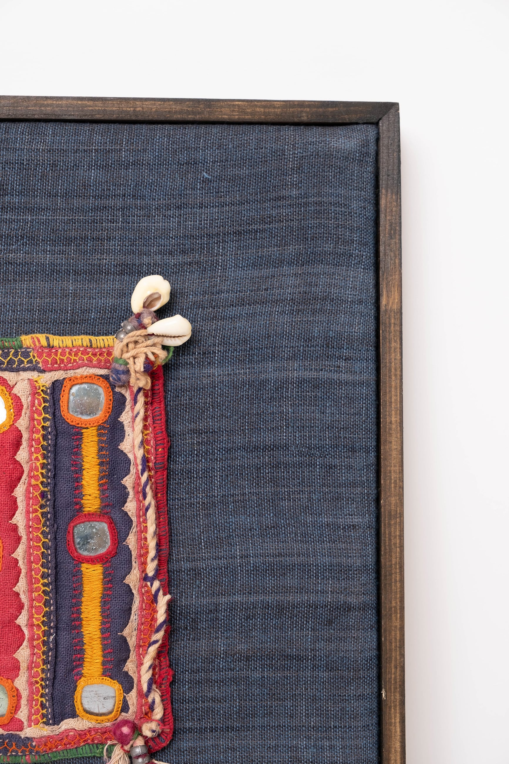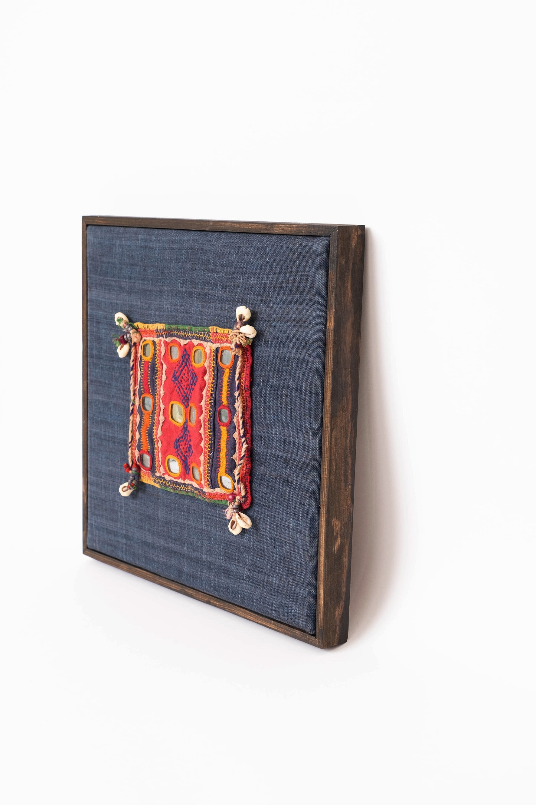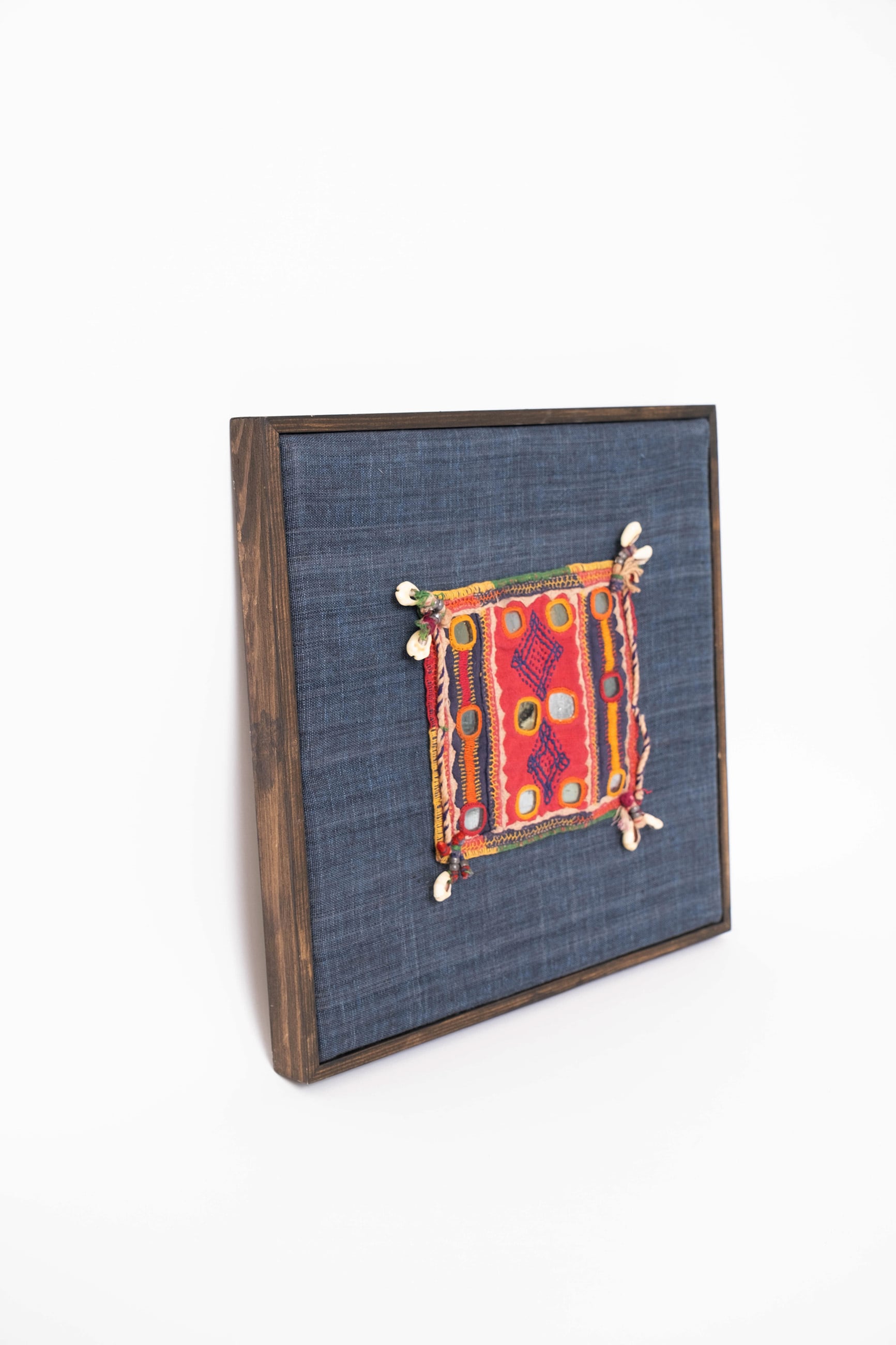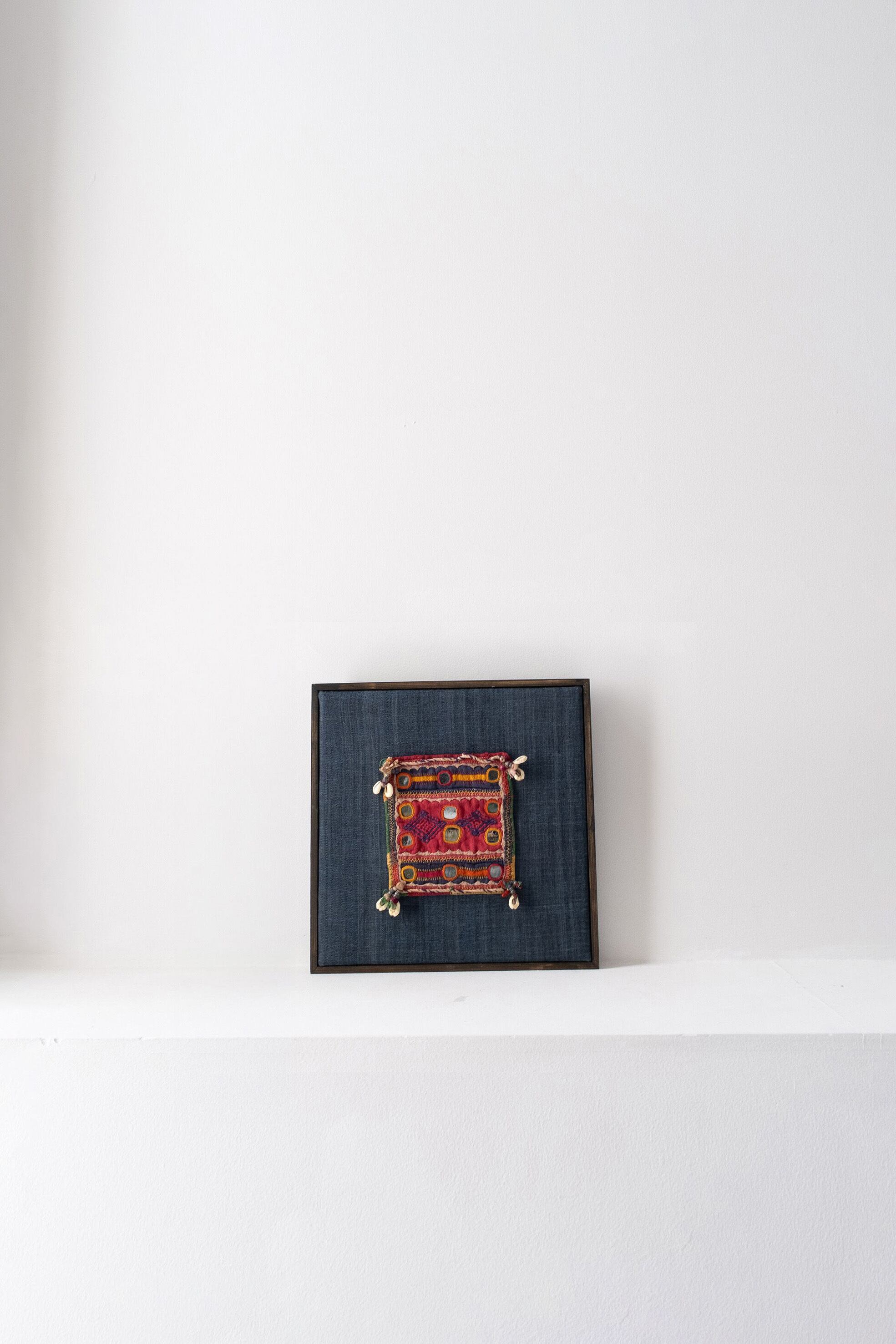 こちらは、民族衣装の一部に使われていた布の断片を額装した商品です。
