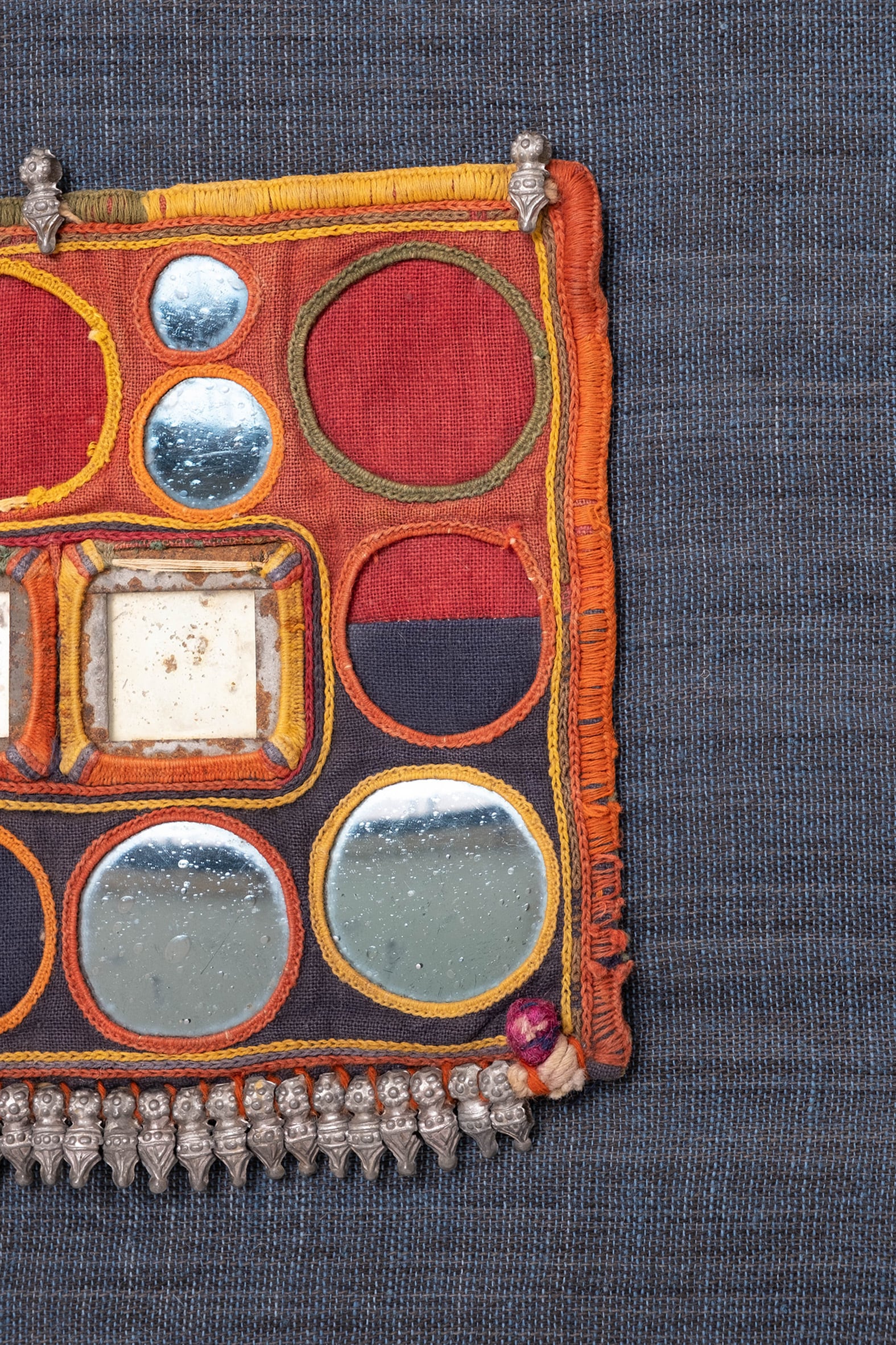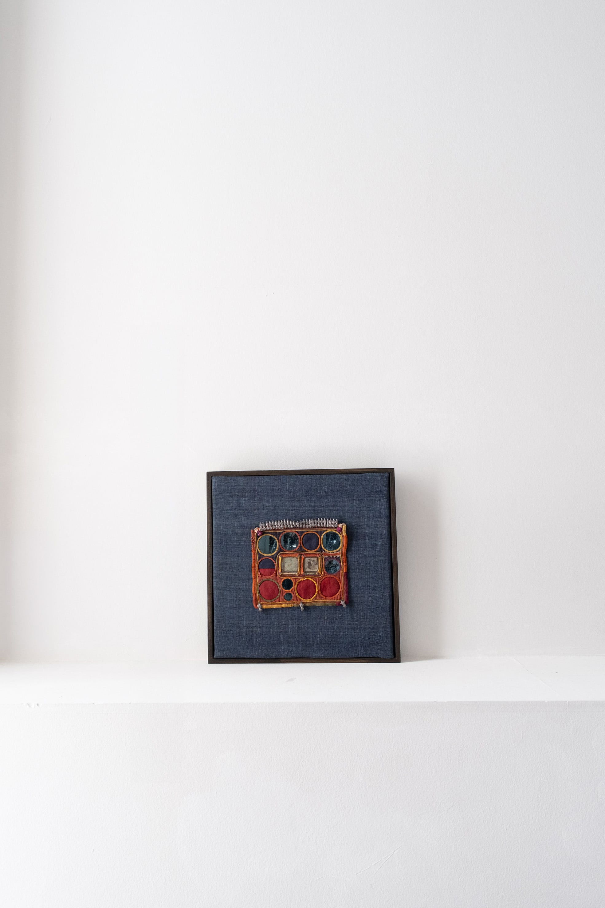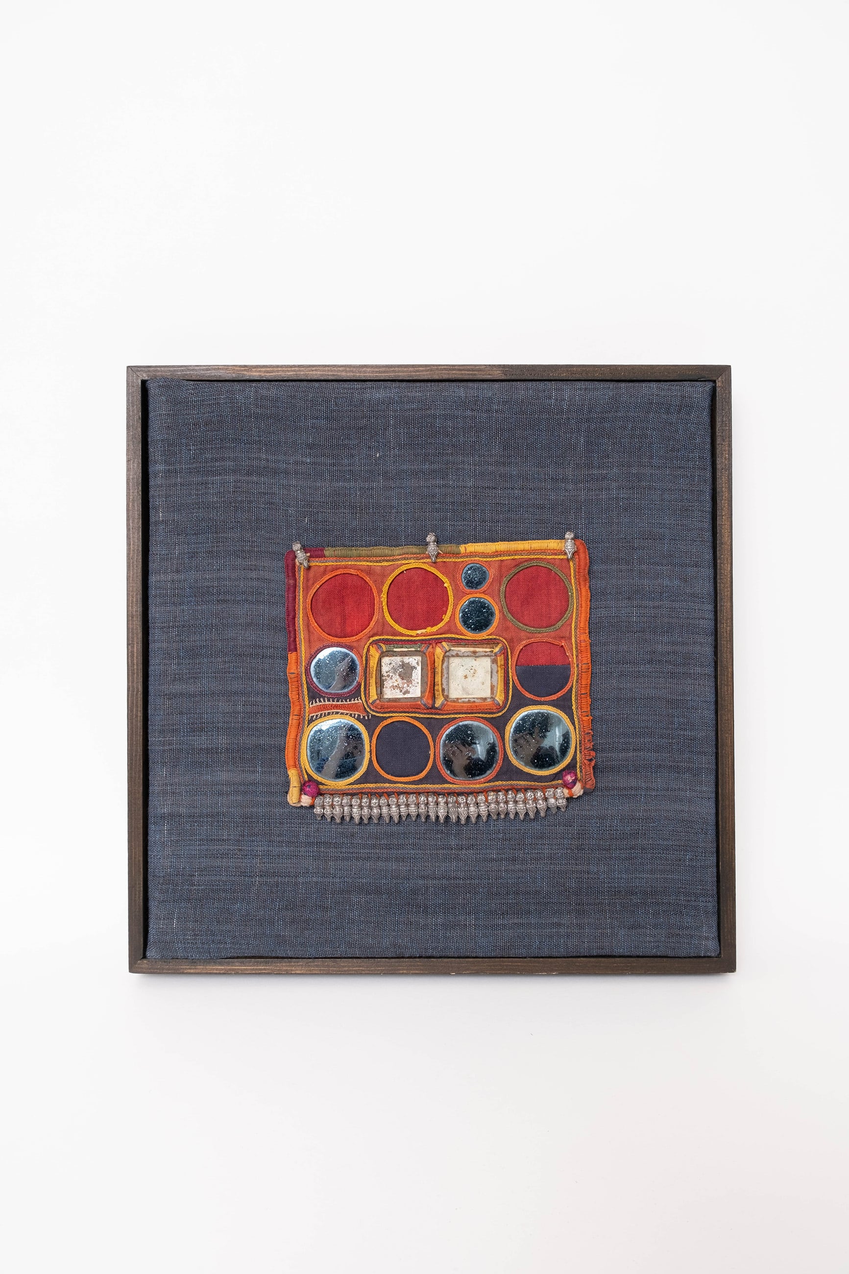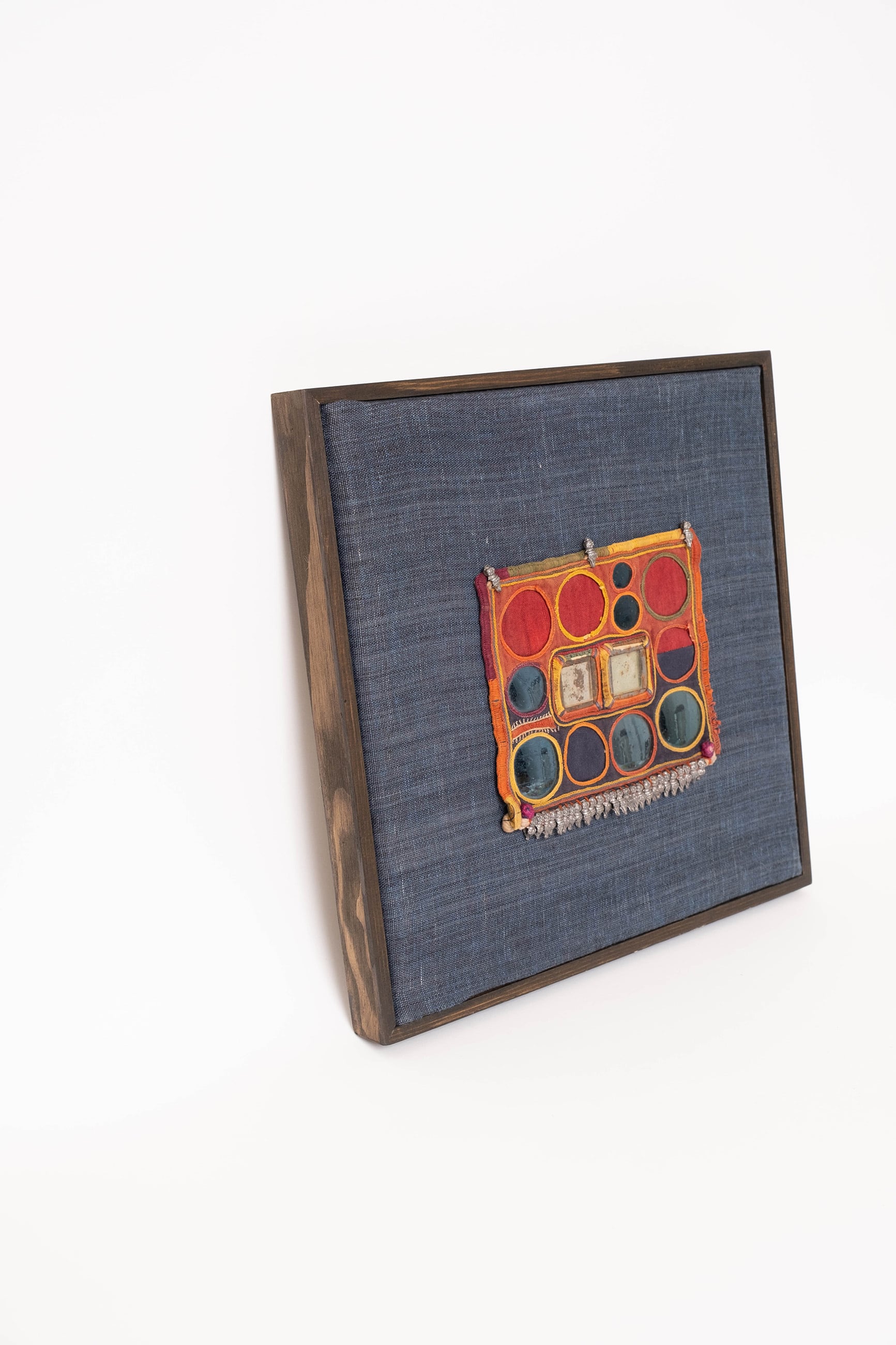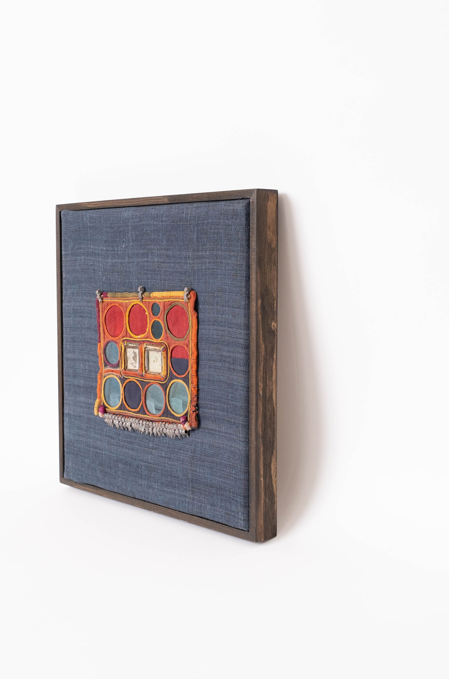 こちらは、民族衣装の一部に使われていた布の断片を額装した商品です。